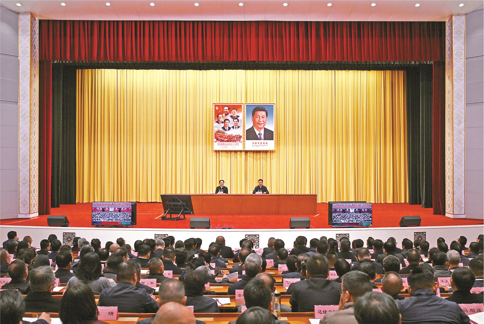 ཏང་ཀྲུང་དབྱང་གི་གཅིག་གྱུར་བཀོད་སྒྲིག་གཞིར་བཟུང་། ཟླ་11ཚེས་10ཉིན་གྱི་སྔ་དྲོར། ཏང་གི་སྐབས་ཉི་ཤུ་པའི་ཀྲུང་ཨུ་ཚང་འཛོམས་གྲོས་ཚོགས་ཐེངས་བཞི་པའི་དགོངས་དོན་སློབ་སྦྱོང་དང་ལག་བསྟར་བྱེད་པའི་ཀྲུང་དབྱང་སྒྲོག་འགྲེལ་ཚོགས་པའི་སྙན་ཞུའི་ཚོགས་འདུ་ལྷ་སར་འཚོགས་ཤིང་། ཀྲུང་དབྱང་སྒྲོག་འགྲེལ་ཚོགས་པའི་ཁོངས་མི་དང་རྒྱལ་ཁབ་འཕེལ་སྒྱུར་ཨུ་ལྷན་གྱི་ཀྲུའུ་རེན་གཞོན་པ་ཝང་ཁྲང་ལིན་གྱིས་སྒྲོག་འགྲེལ་སྙན་ཞུ་གནང་བ་དང་། རང་སྐྱོང་ལྗོངས་ཏང་ཨུད་ཀྱི་ཧྲུའུ་ཅི་ཝང་ཅུན་ཀྲེང་གིས་གཙོ་སྐྱོང་གནང་ནས་གསུང་བཤད་གནང་བ། རང་སྐྱོང་ལྗོངས་ཀྱི་འགོ་ཁྲིད་ཡན་ཅིན་ཧའེ་དང་། ཀརྨ་ཚེ་བརྟན། ལིའུ་ཅང་བཅས་ཞུགས་ཡོད་པ་རེད།