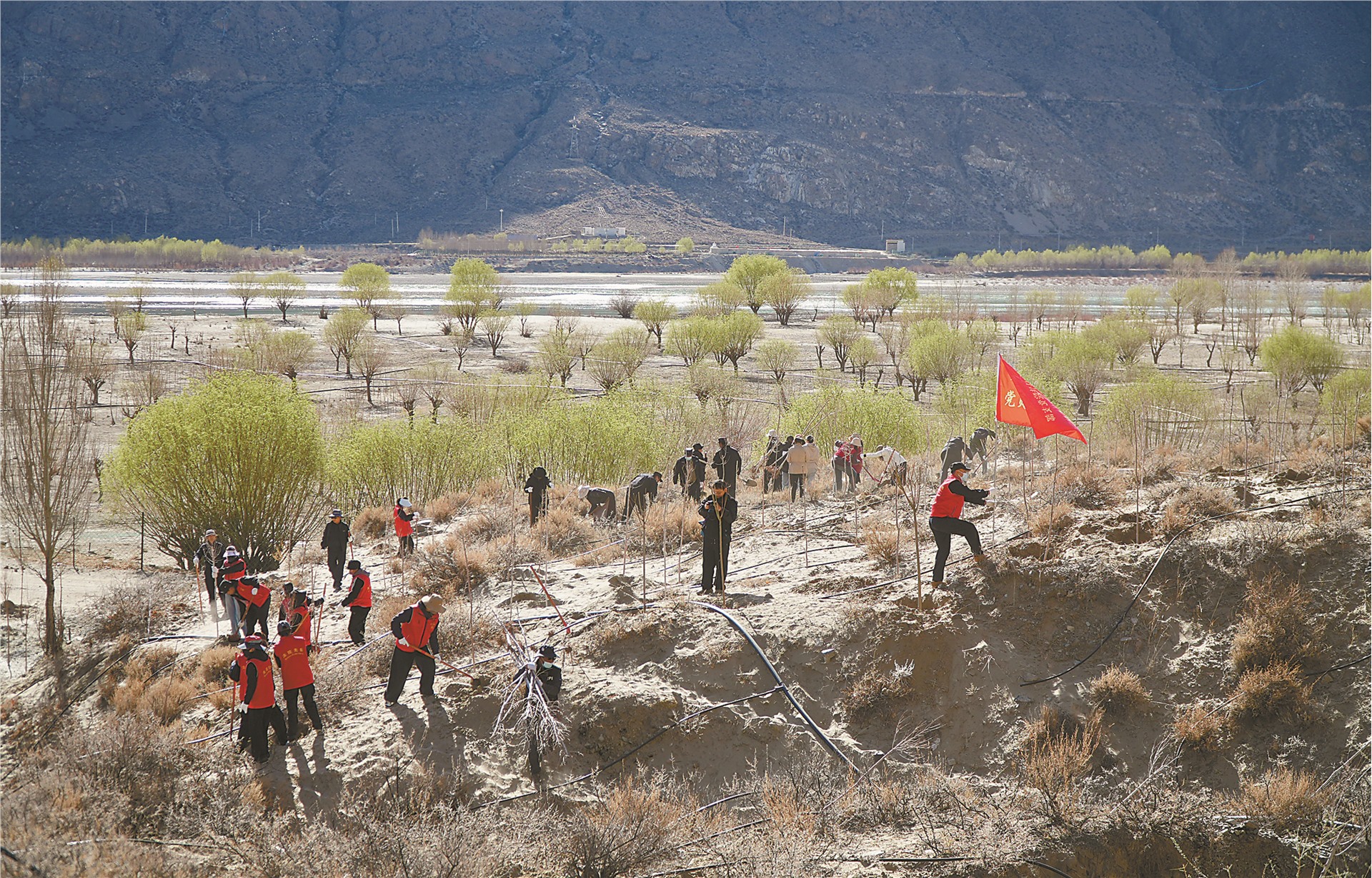 ཡར་ཀླུང་གཙང་པོའི་འགྲམ་དུ་དཔྱིད་རླུང་ལྡང་ནས་ས་གཞི་ཀུན་ཏུ་སྔོ་མདངས་རྒྱས་འགོ་ཚུགས། ཉེ་ཆར། བོད་ལྗོངས་ལྷོ་ཁ་གྲོང་ཁྱེར་ཟངས་རི་རྫོང་གི་2026ལོའི་དཔྱིད་དུས་ཀྱི་དམངས་ཡོངས་ཀྱི་འོས་འགན་ཤིང་འཛུགས་བྱེད་སྒོ་རྫོང་དེའི་གཙང་འགྲམ་ལམ་ཆེན་གྱི་ཡར་ཀླུང་གཙང་འགྲམ་དུ་འགོ་ཚུགས་པ་རེད། རྫོང་ཡོངས་ཀྱི་ཏང་ཡོན་ལས་བྱེད་པ་དང་། མང་ཚོགས། དང་བླངས་པ་བཅས་མི་740ལྷག་ཙམ་གྱིས་ཐང་ཤིང་དང་སྦྱར་པ་སོགས་ཀྱི་སྡོང་ཕྲུག་སྣ་ཚོགས་རྐང་ཁྲི་1.1བཏབ་སྟེ་བྱ་སྤྱོད་དངོས་ལ་བརྟེན་ནས་ས་མཐོར་ལྗོན་ཤིང་བཙུགས་ཡོད། འདི་ནི་ཤིང་འཛུགས་བྱ་ཡུལ་ཡིན་པ།