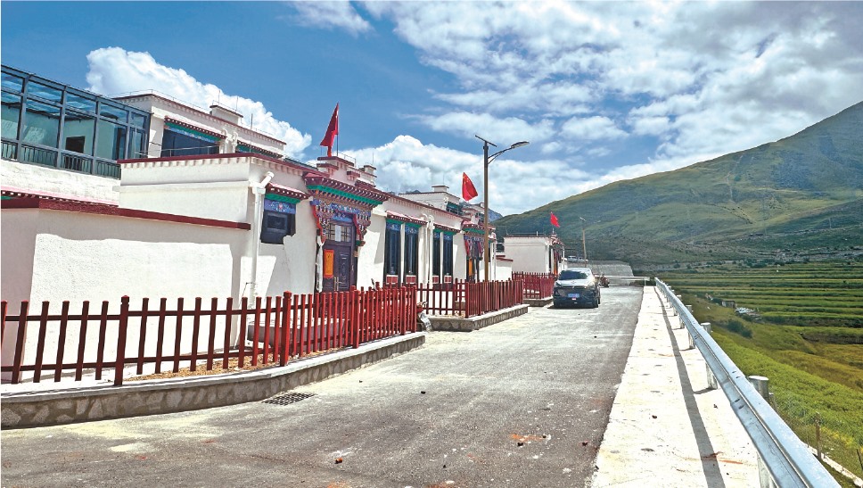 འདི་ནི་ནོར་བུ་ས་གྲོང་ཚོའི་སྡོད་ཁང་གསར་པའི་ཟུར་ཞིག་ཡིན་པ། ཉེ་ཆར། ལྷོ་ཁ་གྲོང་ཁྱེར་ཆུ་གསུམ་རྫོང་ནོར་བུ་ས་གྲོང་ཚོས་བདེ་སྐྱིད་ལྡན་པའི་ཉིན་མོ་སྟེ། གནས་འཕྲོད་ལས་འཚམ་དང་མཛེས་མཐུན་གསུམ་ལྡན་གྲོང་ཚོའི་སྡོད་ཁང་དུ་སྤོ་བའི་མཛད་སྒོ་བསུས་ཤིང་། ཉིན་དེར། ལུས་ལ་གཟབ་མཆོར་ལེགས་པར་སྤྲས་པའི་ཡུལ་མི་ཚོའི་ངོ་གདོང་ནས་དགའ་སྤྲོའི་འཛུམ་མདངས་འཕྱུར་བཞིན་མཆིས། གྲོང་ཚོ་གསར་པའི་བོད་ཁང་དག་ཁམས་གཙང་ལ་གྲལ་འགྲིག་པ་དང་། ཁང་བཟང་དཀར་པོ་དང་མཐའ་འཁོར་གྱི་རི་སྔོན་ཆུ་དྭངས་ཕན་ཚུན་མཛེས་རྒྱན་དུ་གྱུར་ཏེ་ལྟ་ན་སྡུག་པའི་མཛེས་ལྗོངས་ཤིག་གྲུབ་ཡོད། ཡུལ་མིའི་ཁྱིམ་དུ་སྐྱོད་སྐབས། ཁང་པ་དཀར་ཆ་དོད་ཅིང་ཁམས་གཙང་བ་དང་། དེང་རབས་ཀྱི་ཐབ་ཚང་དང་གསང་སྤྱོད་སོགས་གང་དགོས་འཛོམས་པས། སྔོན་ཆད་ཀྱི་སྡོད་ཁང་ཆ་རྐྱེན་དང་བསྡུར་ན་འགྱུར་ལྡོག་ཧ་ཅང་ཆེན་པོ་བྱུང་ཡོད།