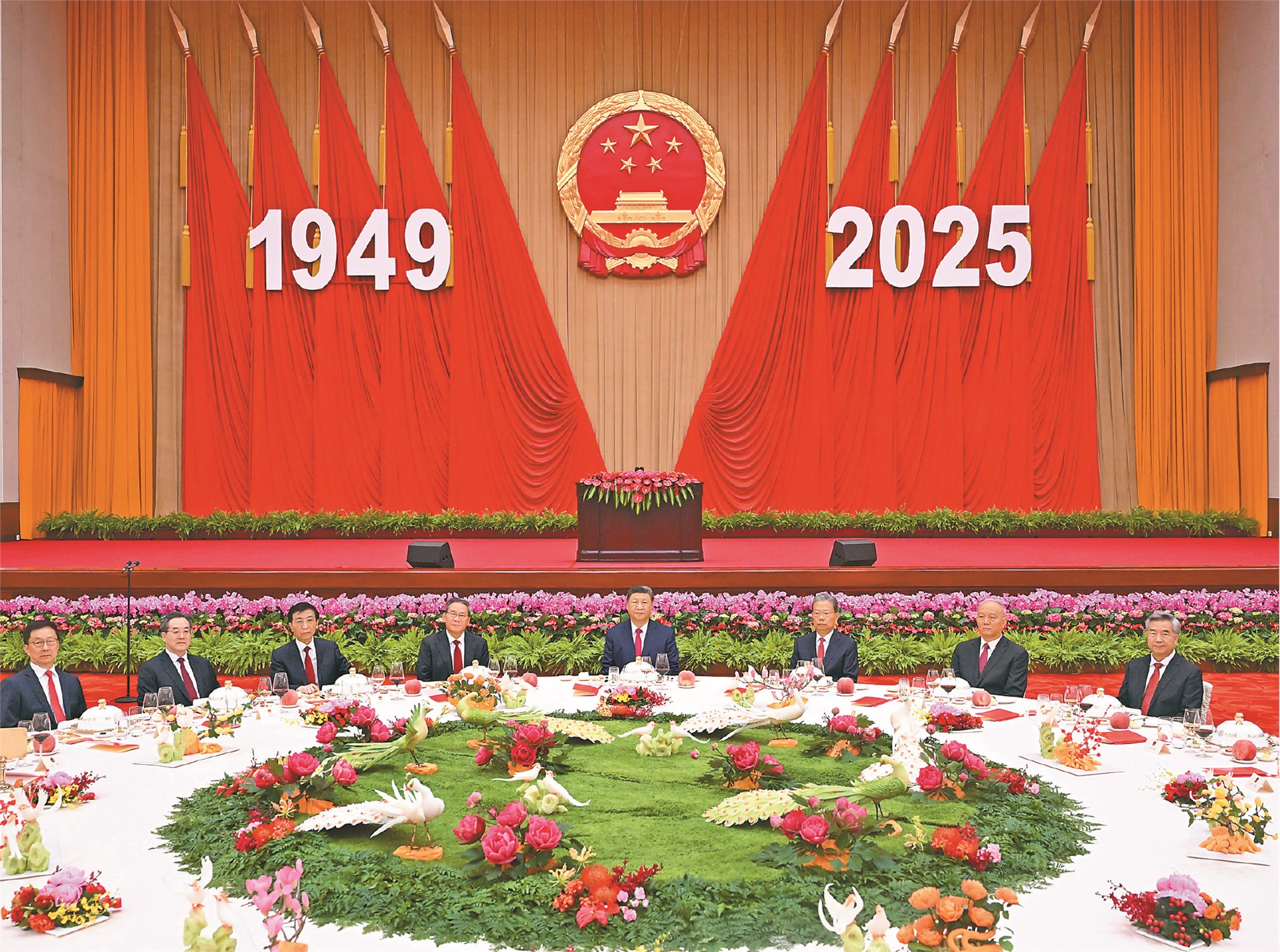 ཟླ་9ཚེས་30ཉིན་གྱི་དགོང་མོར། ཀྲུང་ཧྭ་མི་དམངས་སྤྱི་མཐུན་རྒྱལ་ཁབ་དབུ་བརྙེས་ནས་ལོ་ངོ་76འཁོར་བར་རྟེན་འབྲེལ་ཞུ་བའི་སྣེ་ལེན་ཚོགས་འདུ་མི་དམངས་ཚོགས་ཁང་ཆེ་མོར་འཚོགས་པ་རེད། ཀྲུང་གུང་ཀྲུང་དབྱང་གི་སྤྱི་ཁྱབ་ཧྲུའུ་ཅི་དང་། རྒྱལ་ཁབ་ཀྱི་ཀྲུའུ་ཞི། ཀྲུང་དབྱང་དམག་ཨུད་ཀྱི་ཀྲུའུ་ཞི་བཅས་ཡིན་པའི་ཞི་ཅིན་ཕིང་སྣེ་ལེན་ཚོགས་འདུར་ཕེབས་ནས་གསུང་བཤད་གལ་ཆེན་གནང་བ་རེད།