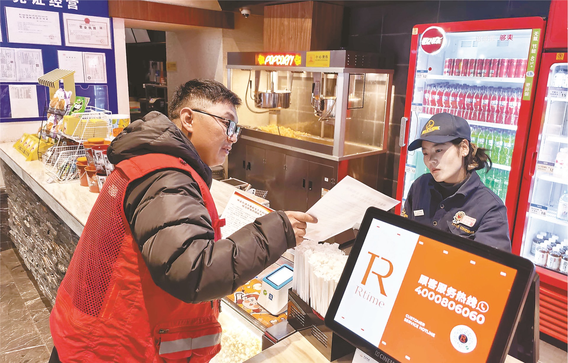 འདི་ནི་ལས་དོན་པས་ཚོང་པར“སྒོ་འགྲམ་གྱི་འགན་ལེན་གསུམ”གྱི་ནང་དོན་གསལ་འགྲེལ་བྱེད་བཞིན་པ།