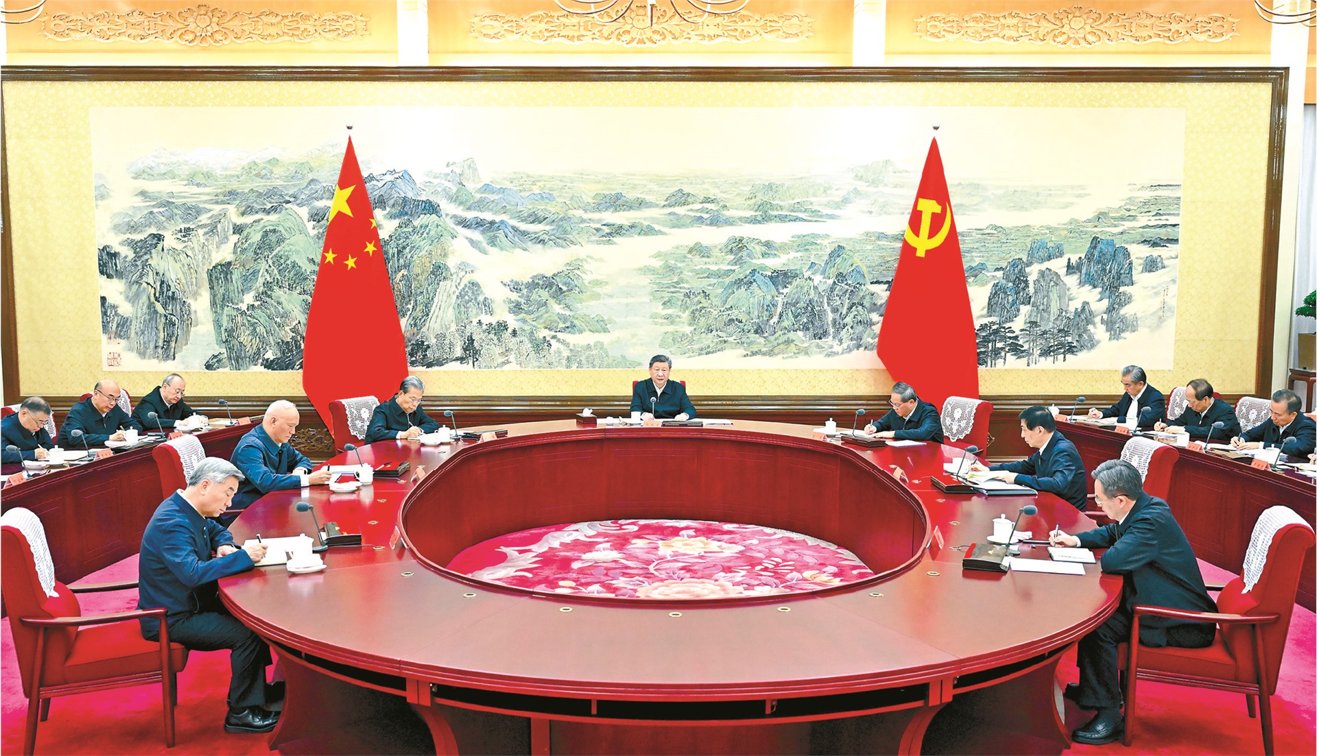 ཀྲུང་དབྱང་ཆབ་སྲིད་ཅུས་ཀྱི་བློ་མཐུན་ཚོས་ངོས་འཛིན་གཅིག་མཐུན་གནང་དོན། ཏང་དང་རྒྱལ་ཁབ་ཀྱི་བྱ་གཞག་ལ་ཐོབ་པའི་གྲུབ་འབྲས་གལ་ཆེན་གསར་པ་དེ་དག་ནི་རྩ་བའི་ཆར་བློ་མཐུན་ཞི་ཅིན་ཕིང་གིས་སྲོག་ཤིང་གནང་བའི་ཏང་ཀྲུང་དབྱང་གིས་ཁ་སྒྱུར་ཕྱོགས་སྟོན་གནང་བ་དང་ཞི་ཅིན་ཕིང་གི་དུས་རབས་གསར་པའི་ཀྲུང་གོའི་ཁྱད་ཆོས་ཀྱི་སྤྱི་ཚོགས་རིང་ལུགས་ཀྱི་དགོངས་པ་ཚན་རིག་དང་མཐུན་པའི་ཁྲིད་སྟོན་ལས་བྱུང་བ་ཞིག་རེད། ཏང་ཡོངས་ཀྱིས་ངེས་པར་དུ“གཏན་འཁེལ་གཉིས”ཀྱི་ཐག་གཅོད་རང་བཞིན་གྱི་དོན་སྙིང་ལ་གོ་བ་གཏིང་ཟབ་བླངས་ནས“འདུ་ཤེས་བཞི”ཟབ་ཏུ་གཏོང་བ་དང་། “གདེང་ཚོད་བཞི”བརྟན་དུ་གཏོང་བ། “སྲུང་སྐྱོང་གཉིས”ཐུབ་པ་བཅས་བྱེད་དགོས། སང་ལོ་ནི“ལོ་ལྔ་ཚན་བཅོ་ལྔ་པའི”འགོ་འཛུགས་ལོ་ཡིན་པས། ཏང་ཀྲུང་དབྱང་གི་ཐབས་ཇུས་བཀོད་སྒྲིག་མཐའ་གཅིག་ཏུ་དོན་འཁྱོལ་དང་། འཕེལ་རྒྱས་ཀྱི་འདུ་ཤེས་གསར་པ་ཆ་ཚང་བ་དང་། གནད་ལ་འཁེལ་བ། ཕྱོགས་ཡོངས་བཅས་ཀྱི་སྒོ་ནས་ལག་བསྟར། འཕེལ་རྒྱས་ཀྱི་བཀོད་པ་གསར་པ་མགྱོགས་མྱུར་བསྐྲུན་པ། སྤུས་ཚད་མཐོ་བའི་འཕེལ་རྒྱས་ལ་སྐུལ་འདེད་ཤུགས་ཆེན་གཏོང་བ། ཕྱོགས་ཡོངས་ནས་སྒྱུར་བཅོས་སྒོ་དབྱེ་སྔར་བས་ཟབ་ཏུ་གཏོང་བ། འཕེལ་རྒྱས་དང་བདེ་འཇགས་ལ་དེ་བས་ལེགས་པོས་སྤྱི་འདོམས་བྱེད་པ། དཔལ་འབྱོར་གྱི་སྤུས་ཚད་ནུས་ལྡན་ངང་མཐོར་འདེགས་དང་གྲངས་འབོར་ལུགས་མཐུན་འཕར་བར་སྐུལ་འདེད་གཏོང་བ། དམངས་འཚོ་རྒྱུན་མཐུད་ལེགས་སུ་གཏོང་བ། སྤྱི་ཚོགས་ཞི་མཐུན་བརྟན་ལྷིང་རྒྱུན་འཁྱོངས། ཕྱོགས་ཡོངས་ནས་ཏང་ནན་པོས་སྐྱོང་བར་སྐུལ་འདེད་གཏིང་ཟབ་གཏོང་བ་བཅས་བྱས་ཏེ་འགོ་ཡག་པོ་ཞིག་འཛུགས་ཐུབ་པར་བྱེད་དགོས།