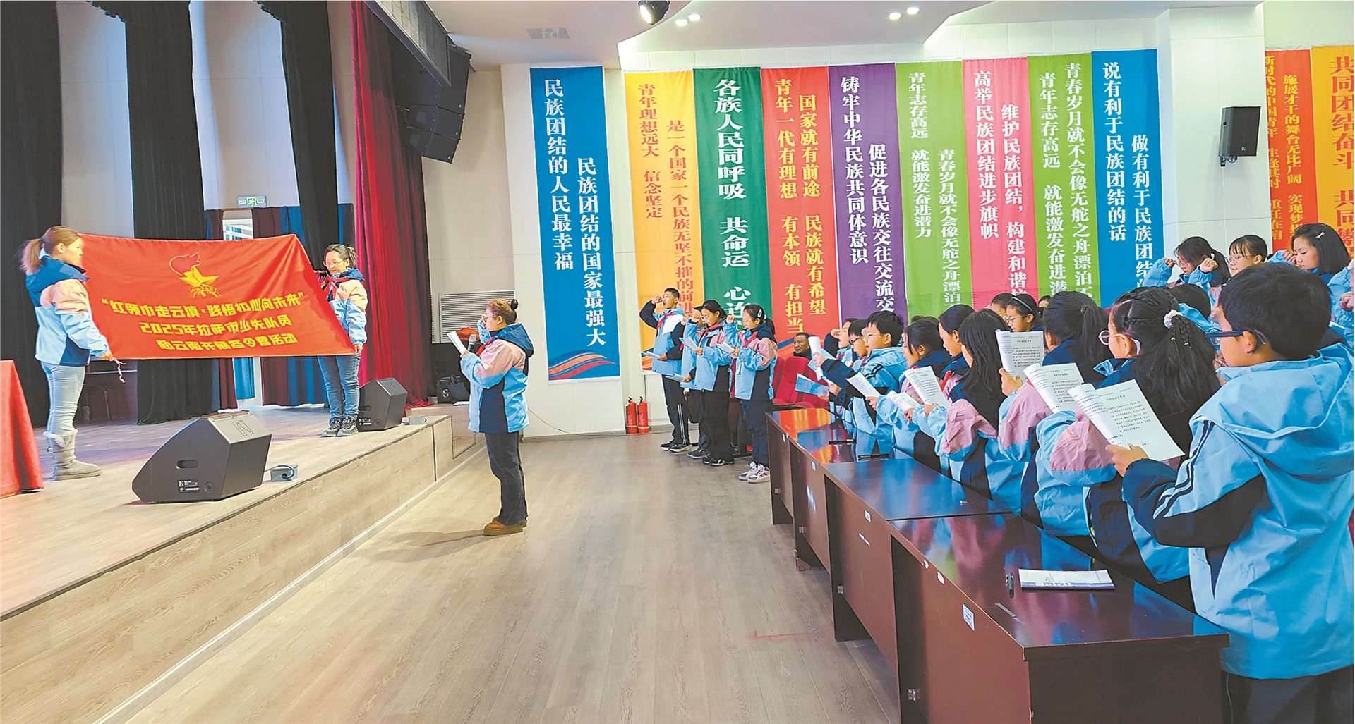 ཉེ་ཆར། ལྷ་ས་གྲོང་ཁྱེར་ལོ་ཆུང་བྱིས་པའི་བྱེད་སྒོ་ལྟེ་གནས་སུ་ཚོན་དར་ལྷབ་ལྷུབ་ཏུ་གཡོ་བཞིན“ལོ་ཆུང་གདོང་ལེན་རུ་མི་ཡུན་ནན་དུ་བསྐྱོད་ནས་གསར་བརྗེའི་རྒྱང་ལམ་གསར་པར་མྱོང་རྟོགས་བྱེད་པའི”གསར་བརྗེའི་ཞིབ་སློབ་ཀྱི་དགུན་གསེང་བྱེད་སྒོའི་འགོ་ཚུགས་མཛད་སྒོ་འཚོགས་པ་རེད།