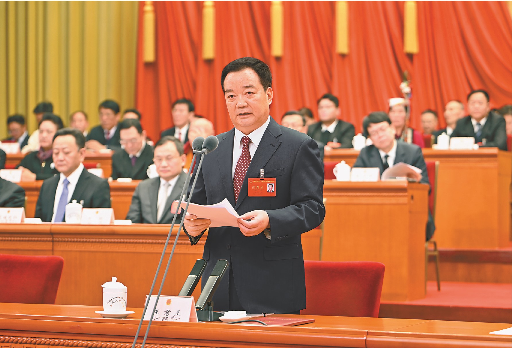 ཝང་ཅུན་ཀྲེང་གིས་ནན་བཤད་གནང་དོན། འགོ་ཡག་པོ་འཛུཌ་པ་ནི་སྤྱི་ཡོངས་དང་འབྲེལ་བ་ཡོད་པ་དང་། གོམ་སྟབས་བརྟན་པོ་སྤོ་བ་དེས་རྗེས་མཐུད་ཀྱི་ལས་དོན་ཐག་གཅོད་བྱེད། ལྗོངས་ཡོངས་ཀྱི་རིམ་ཁག་མི་དམངས་འཐུས་ཚོགས་དང་མི་དམངས་འཐུས་ཚོགས་ཀྱི་འཐུས་མིས་ཞི་ཅིན་ཕིང་གི་དུས་རབས་གསར་པའི་ཀྲུང་གོའི་ཁྱད་ཆོས་ཀྱི་སྤྱི་ཚོགས་རིང་ལུགས་ཀྱི་དགོངས་པ་མཛུབ་ཁྲིད་དུ་བྱ་རྒྱུ་མཐའ་འཁྱོངས་དང་། མི་དམངས་འཐུས་མི་ཚོགས་ཆེན་ལམ་ལུགས་མཐའ་འཁྱོངས་དང་འཐུས་སྒོ་ཚང་དུ་གཏོང་རྒྱུའི་སྐོར་གྱི་སྤྱི་ཁྱབ་ཧྲུའུ་ཅི་ཞི་ཅིན་ཕིང་གི་དགོངས་པ་གལ་ཆེན་ལག་བསྟར་དོན་འཁྱོལ་མཐའ་གཅིག་ཏུ་བྱེད་པ། ཏང་གི་འགོ་ཁྲིད་དང་། མི་དམངས་རང་ཁྱིམ་རང་བདག ཁྲིམས་ལྟར་རྒྱལ་སྐྱོང་བཅས་གཅིག་གྱུར་དམ་ཟབ་བྱ་རྒྱུ་མཐའ་འཁྱོངས་བྱེད་པ། རྩ་ཁྲིམས་དང་བཅའ་ཁྲིམས་ཀྱིས་དཀྲིས་པའི་ལས་འགན་ཁག་ལག་བསྟར་ནན་ཏན་བྱེད་པ། དུས་རབས་གསར་པའི་མི་དམངས་འཐུས་ཚོགས་ཀྱི་ལས་དོན་སྤུས་ཚད་མཐོ་བའི་འཕེལ་རྒྱས་ལ་སྐུལ་འདེད་གཏོང་བ་བཅས་བྱས་ཏེ་ལྗོངས་ཡོངས་ཀྱི་ལས་ཀའི་སྤྱི་ཡོངས་ལ་སྟོབས་ཤུགས་དེ་བས་ཆེ་བ་ལེགས་སྐྱེས་འབུལ་རྒྱུའི་འབད་བརྩོན་བྱེད་དགོས། ཆབ་སྲིད་ཀྱི་ཚུགས་གནས་མཐོ་རུ་བཏང་ནས་ཏང་གི་འགོ་ཁྲིད་དེ་ཉིད་མི་དམངས་འཐུས་ཚོགས་ཀྱི་ལས་ཀའི་བརྒྱུད་རིམ་ཧྲིལ་པོ་དང་ཕྱོགས་ཁག་ཏུ་ཁྱབ་པ་བྱ་རྒྱུ་མཐའ་འཁྱོངས་ཀྱིས་ཏང་གི་ལམ་ཕྱོགས་དང་། མཛད་ཕྱོགས། སྲིད་ཇུས། ཐབས་ཇུས་བཀོད་སྒྲིག་བཅས་ཕྱོགས་ཡོངས་ནས་ལག་བསྟར་ནུས་ལྡན་ཡོང་བའི་འགན་ལེན་བྱེད་དགོས། མི་དམངས་གོང་དུ་བཀུར་རྒྱུ་མཐའ་འཁྱོངས་ཀྱིས་བརྒྱུད་རིམ་ཧྲིལ་པོའི་མི་དམངས་དམངས་གཙོ་འཕེལ་རྒྱས་དང་ལག་ལེན་ཧུར་ཐག་བསྟར་ཏེ་ཁྲིམས་འཛུགས་རེ་རེ་དང་ཆོད་དོན་དང་གྲོས་ཆོད་རེ་རེ་ནས་མི་དམངས་ཀྱི་ཁེ་ཕན་མཚོན་པ་དང་དེར་སྲུང་སྐྱོང་བྱེད་པ་དང་། མི་དམངས་ཀྱི་འདོད་བློ་མཚོན་པ། མི་དམངས་ཀྱི་བདེ་རྩ་ཆེ་རུ་གཏོང་བ་བཅས་གང་ཐུབ་བྱེད་དགོས། སྤུས་ཚད་མཐོ་བའི་ཁྲིམས་འཛུགས་ལ་སྐུལ་འདེད་གཏོང་བ་དང་། “དོན་ཆེན་བཞི”དོན་འཁྱོལ་ལ་དམ་པོར་དམིགས་པ། “འཇུག་སྒོ་ཆུང་ངུ”ནས་འགོ་བཙུགས་ཏེ་ཁྲིམས་འཛུགས་ལ་ཤུགས་སྣོན་རྒྱག་པ། ཚན་རིག་དང་མཐུན་པའི་ཁྲིམས་འཛུགས་དང་། དམངས་གཙོའི་ཁྲིམས་འཛུགས། ཁྲིམས་ལྟར་ཁྲིམས་འཛུགས། ཁྲིམས་སྐྱོང་དྲིལ་བསྒྲགས་སློབ་གསོ་ལག་བསྟར་གཏིང་ཟབ་བཅས་བྱས་ཏེ་ཕྱོགས་ཡོངས་ནས་ཁྲིམས་ལྟར་བོད་སྐྱོང་ལ་དེ་བས་འཐུས་སྒོ་ཚང་བའི་ཁྲིམས་སྐྱོང་གི་འགན་སྲུང་བྱེད་དགོས། མི་དམངས་འཐུས་ཚོགས་ཀྱི་ལྟ་སྐུལ་གྱི་སྤུས་ཕན་ཆེ་རུ་གཏོང་བ་དང“ལོ་ལྔ་ཚན་བཅོ་ལྔ་པའི”འཆར་འགོད་ལག་བསྟར་ལ་དམིགས་ནས། ལྟ་སྐུལ་གྱི་དམིགས་སའི་རང་བཞིན་དང་། དངོས་ཕན་རང་བཞིན། ཚན་